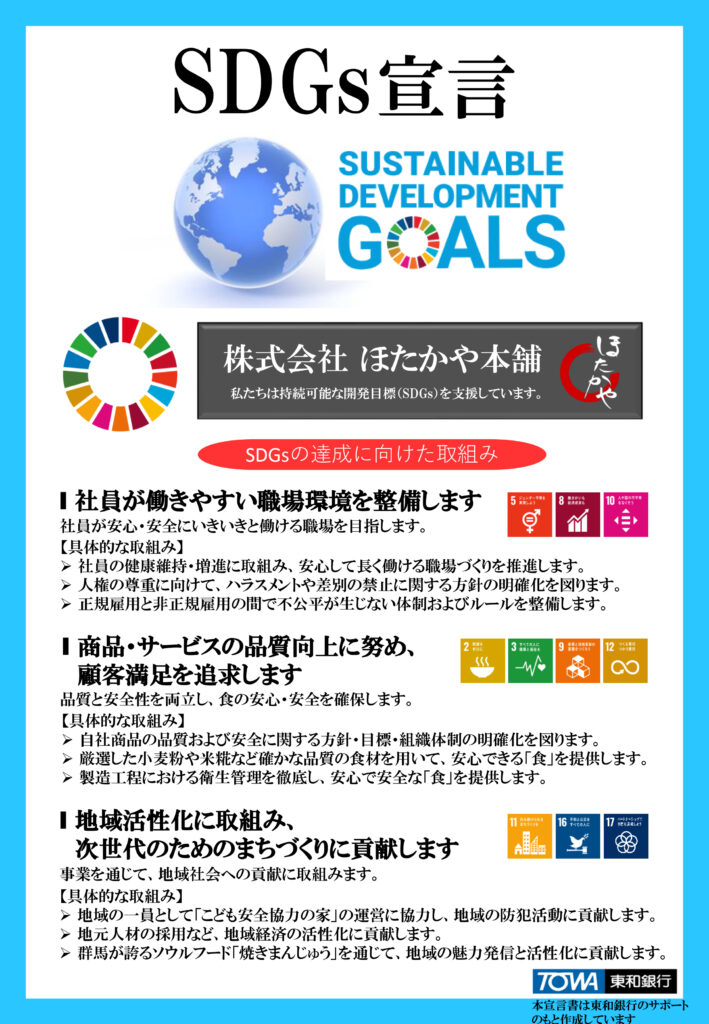 このたび当社は、東和銀行様と連携し、SDGs(持続可能な開発目標)への取り組みとして「SDGs宣言」を策定いたしました。
